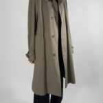 By Aquascutum of London, this trench coat features a button-up closure and a classic back slit. Made in England.