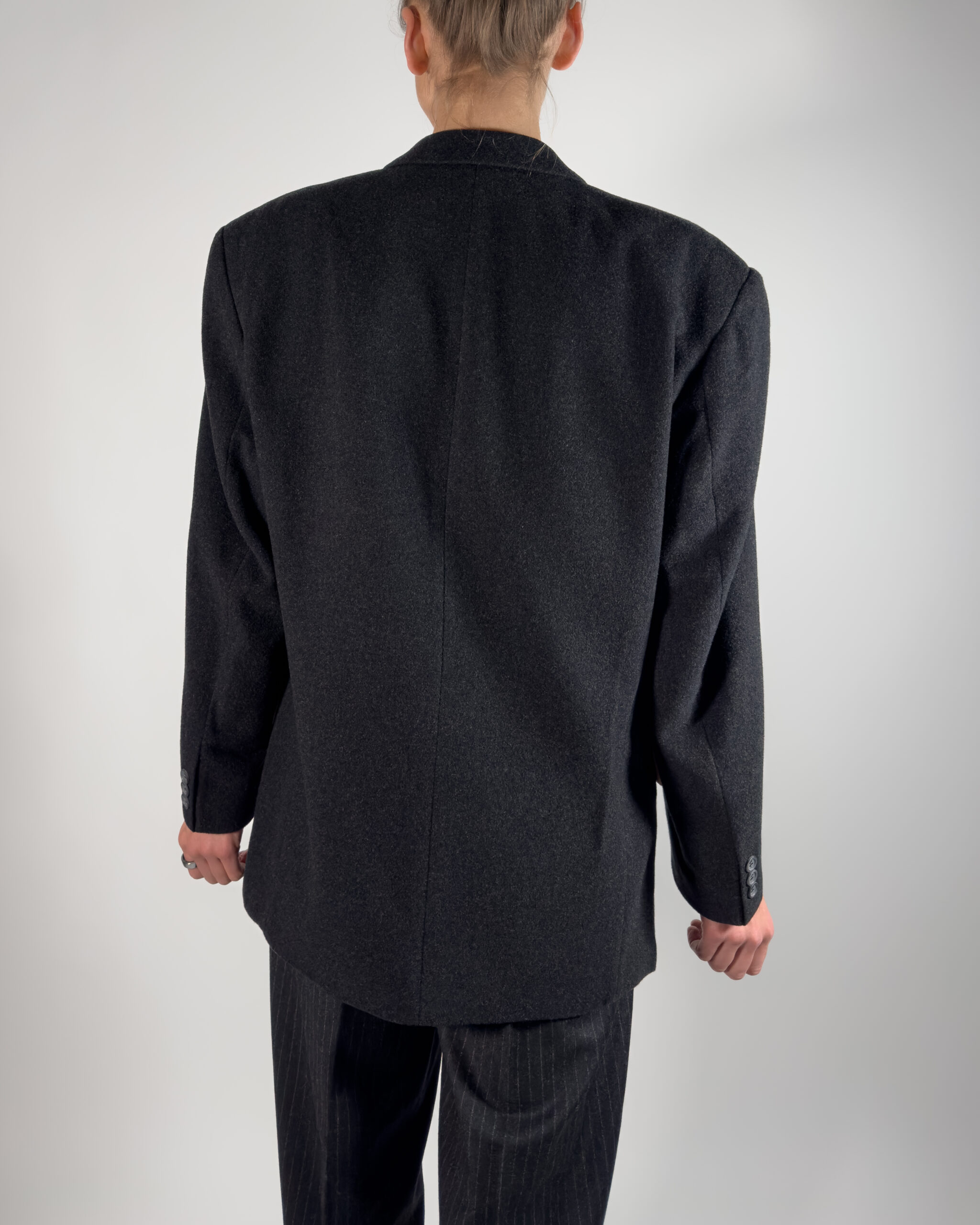 Dark grey blazer by Stones Classics, made from wool and cashmere blend. Designed with a structured fit, featuring a button-up closure, front pockets, and viscose lining.