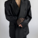 90s vintage blazer by Festive Turo Tailor featuring a sharp double-breasted silhouette and structured shoulders. Made from 100% pure new wool with viscose lining. Impeccably preserved in like new condition.