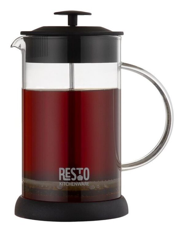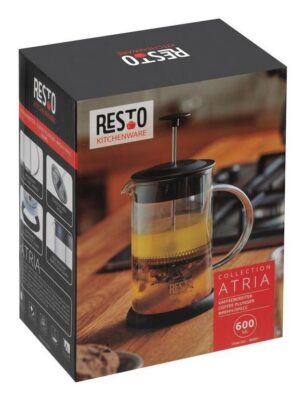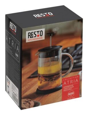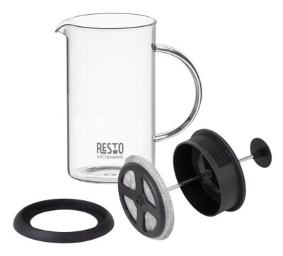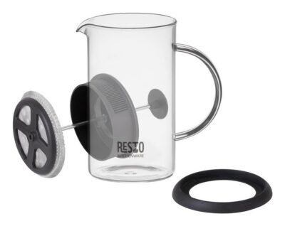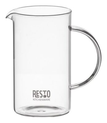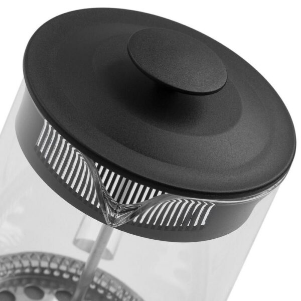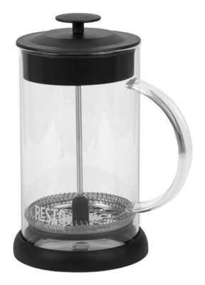 Flask with a glass handle is made of a borosilicate heat-resistant glass Stainless steel filter Plastic lid Silicone removable non-slip base (creates the effect of sticking to a smooth surface of a table, which prevents accidental slipping and tipping)