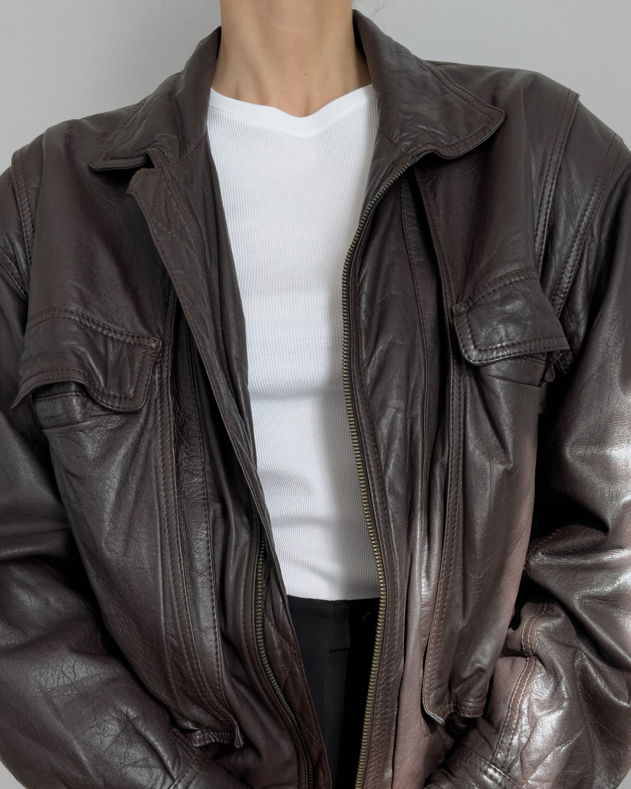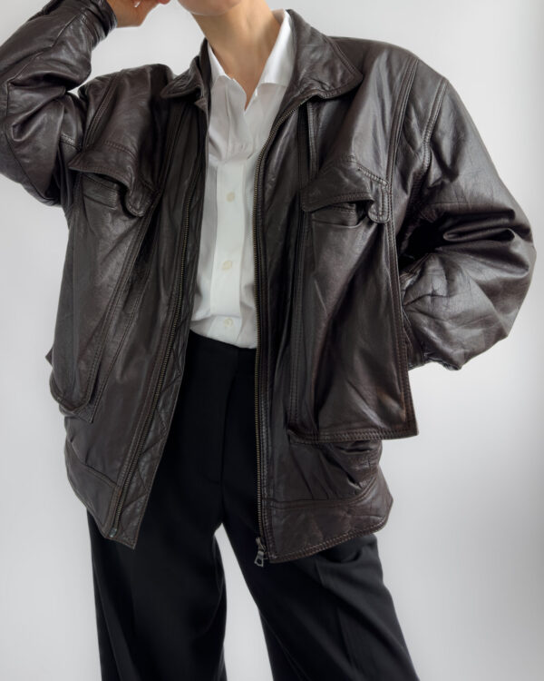 Made from lambs leather, this bomber jacket features a relaxed, cocoon-like silhouette with exaggerated volume. Designed with functional pockets and a zip-front closure