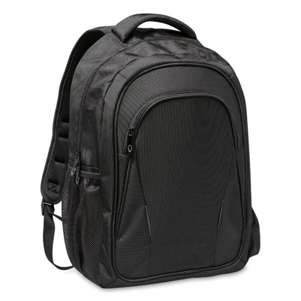 15 inch laptop backpack with compartments. Including several pockets and pen holder. Padded back and shoulder straps. 1680D polyester.