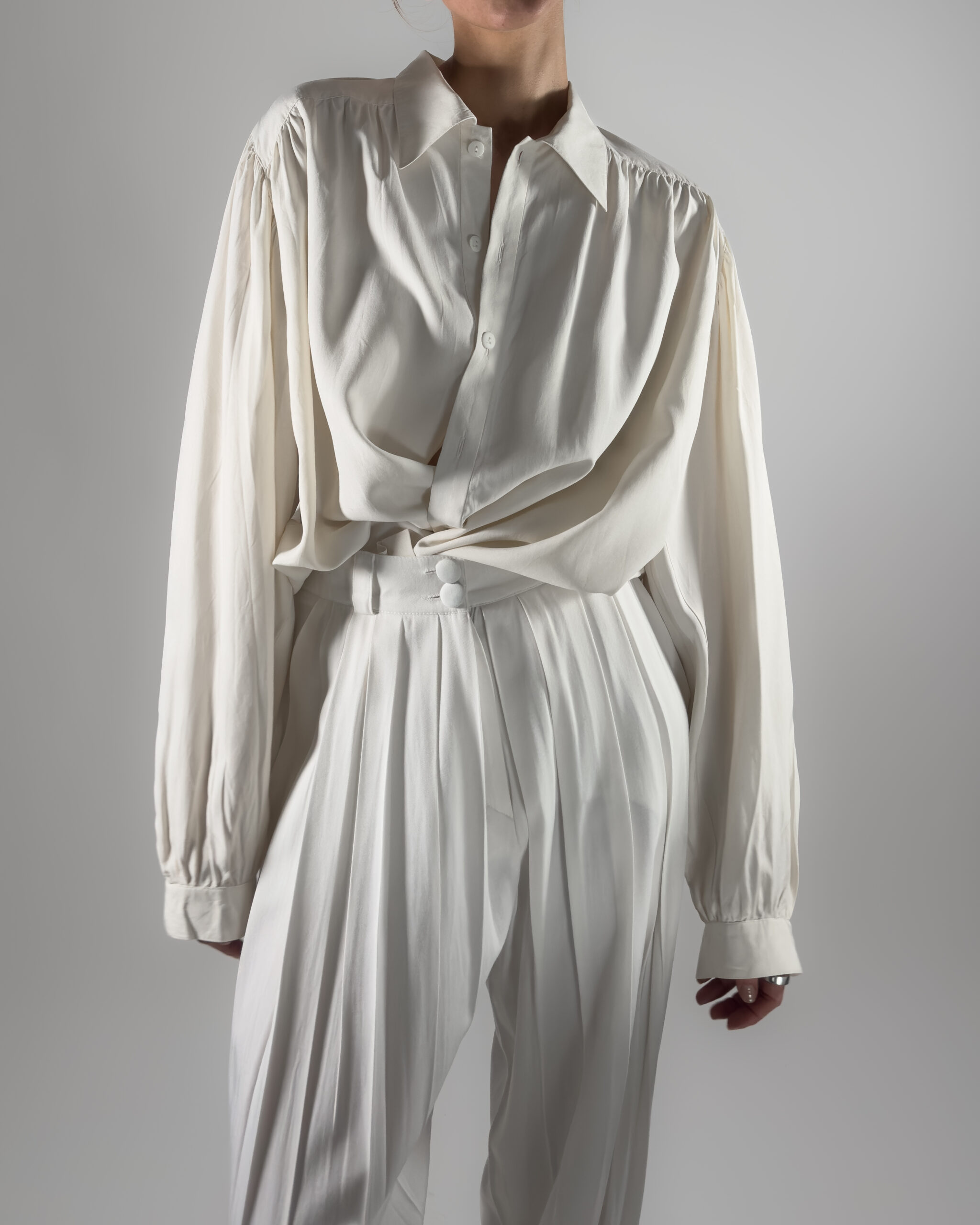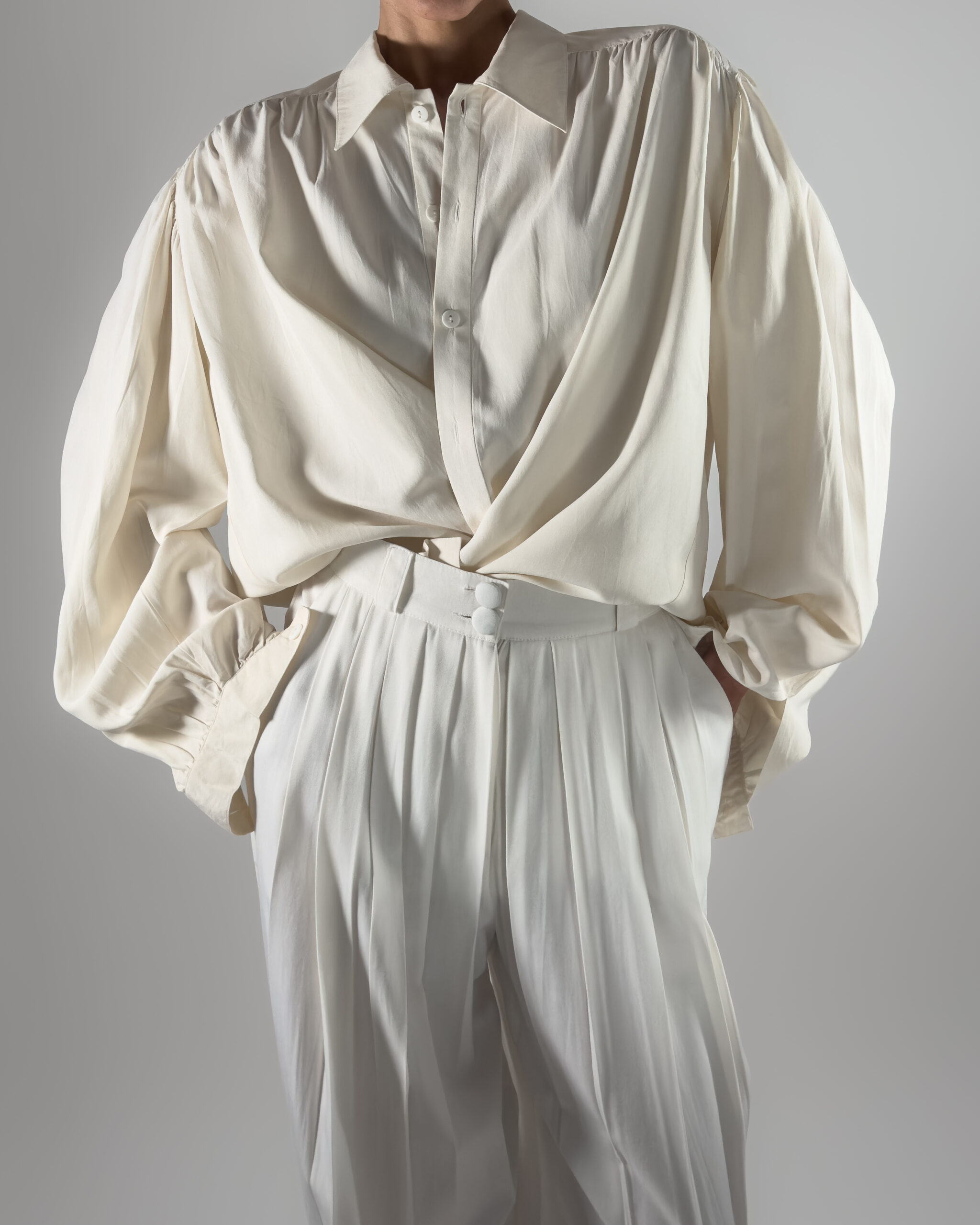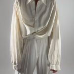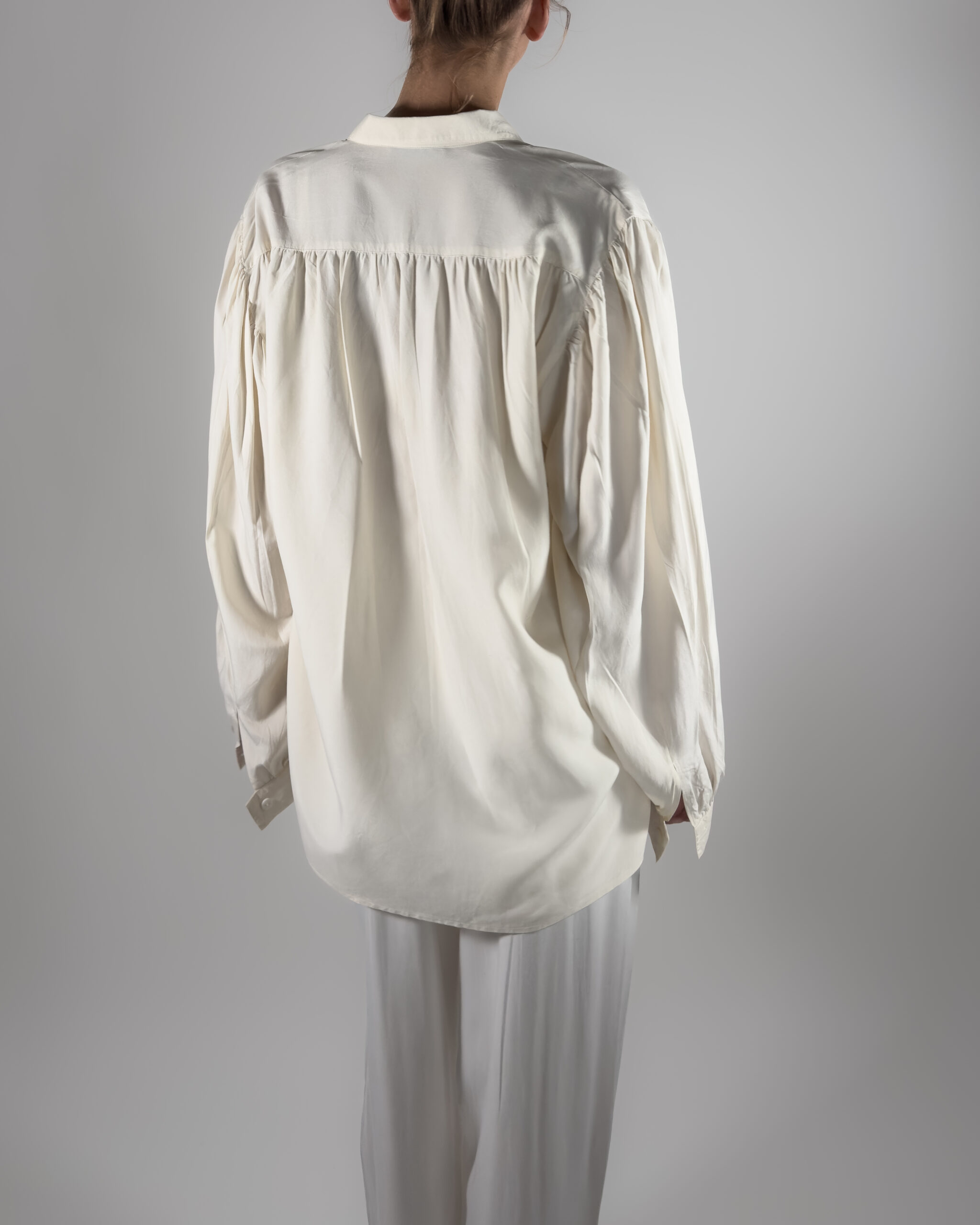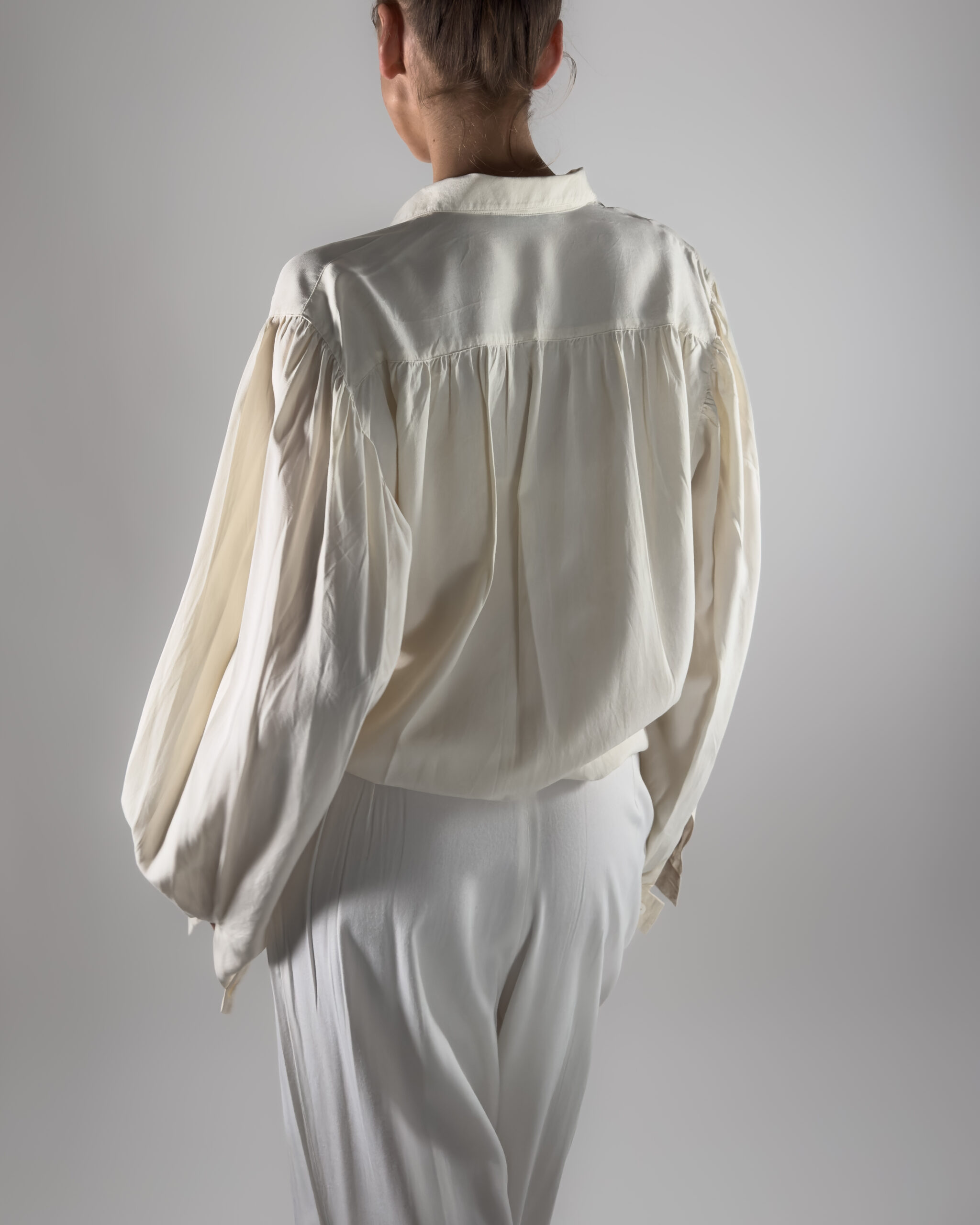 Labelled as TOPMAN, no other labels. Featuring balloon sleeves, a button-up closure, and a classic collar. Lightweight and elegant.