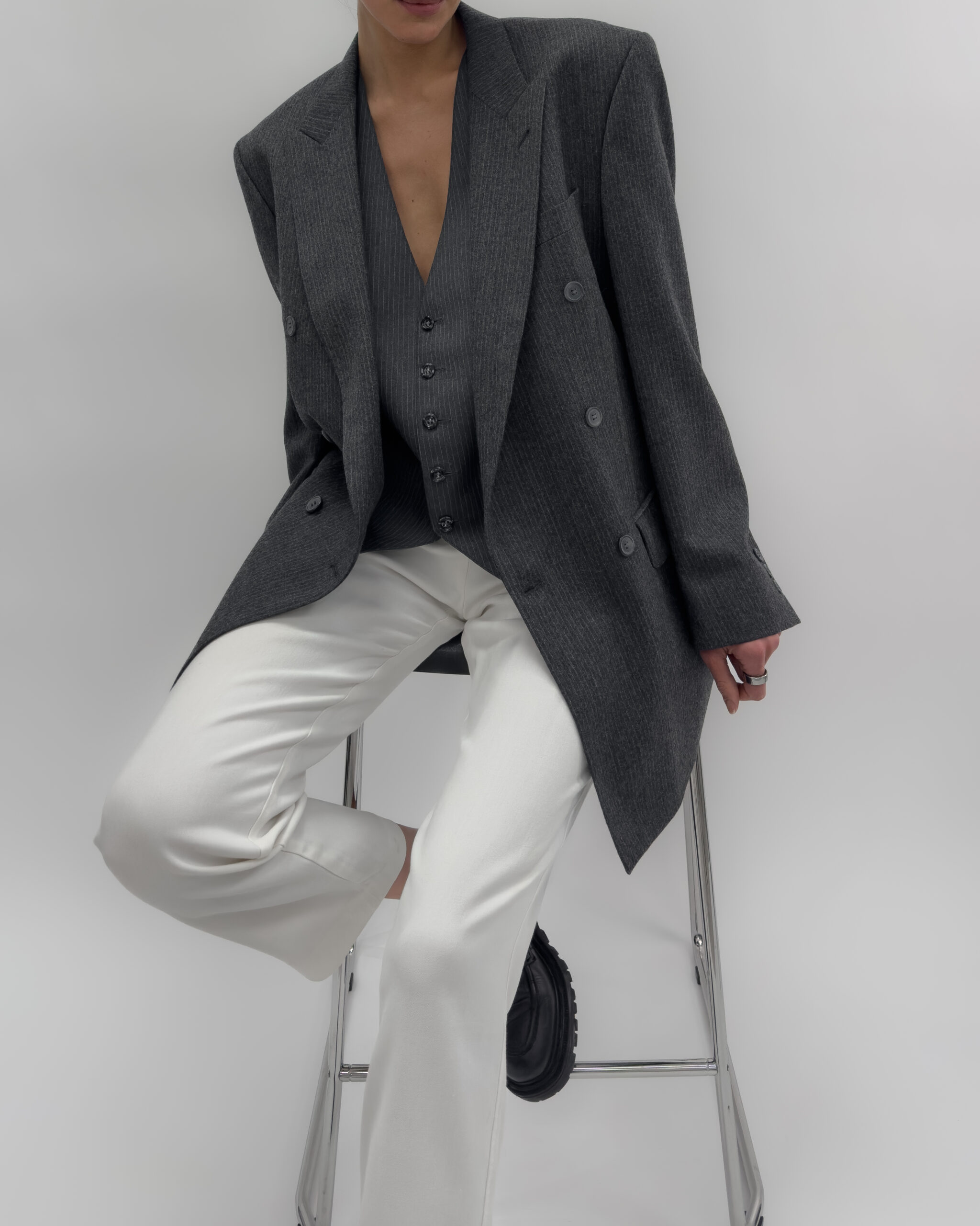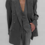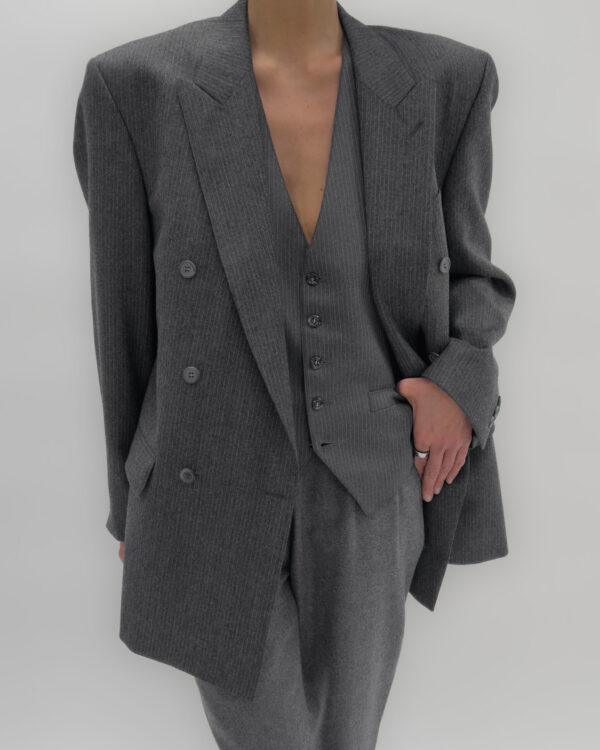 Double-breasted pinstriped blazer in dark grey