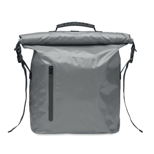 RPET 210D polyester waterproof rolltop backpack. Capacity: 30L.
